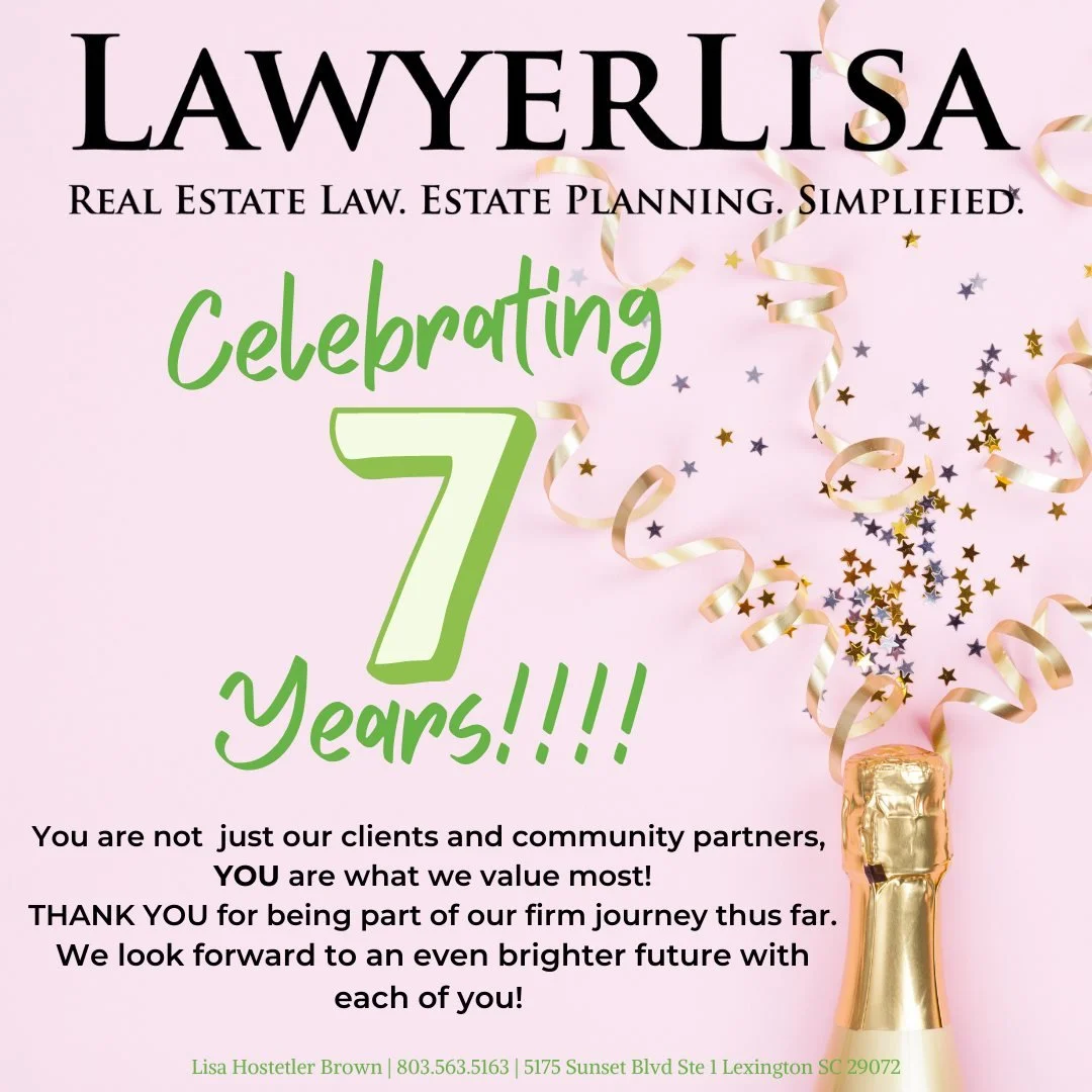LawyerLisa, LLC celebrates 7 years serving our clients! #lawyerlisa #BeEpic #realestateattorney #estateplanningattorney #LifeCarePlanning #whereyourfamilyisourfocus